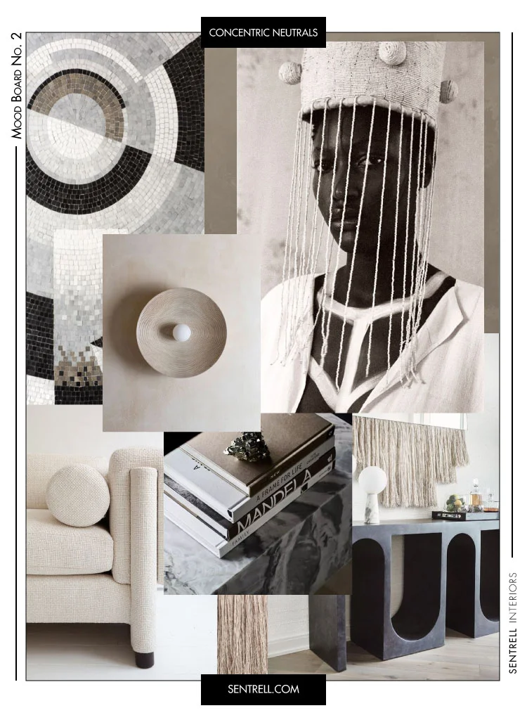 This mood board was inspired by the photograph of model Kiana Cummings in the beaded headdress. As I started to pull images, I noticed a trend of concentric patterns/textures and a neutral color palette. It’s a vibe!